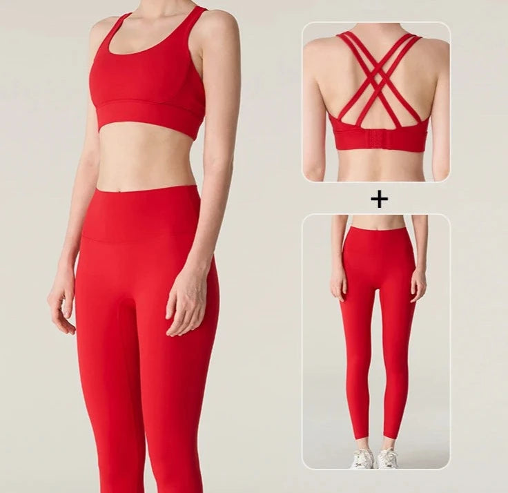 Get ready to sweat in style with Christa's Criss Cross Activewear! This 2-piece set includes a sports bra and leggings, perfect for your yoga, Pilates, or gym workout. The push up design provides support and the athletic fabric ensures comfort. Upgrade your fitness wardrobe today!