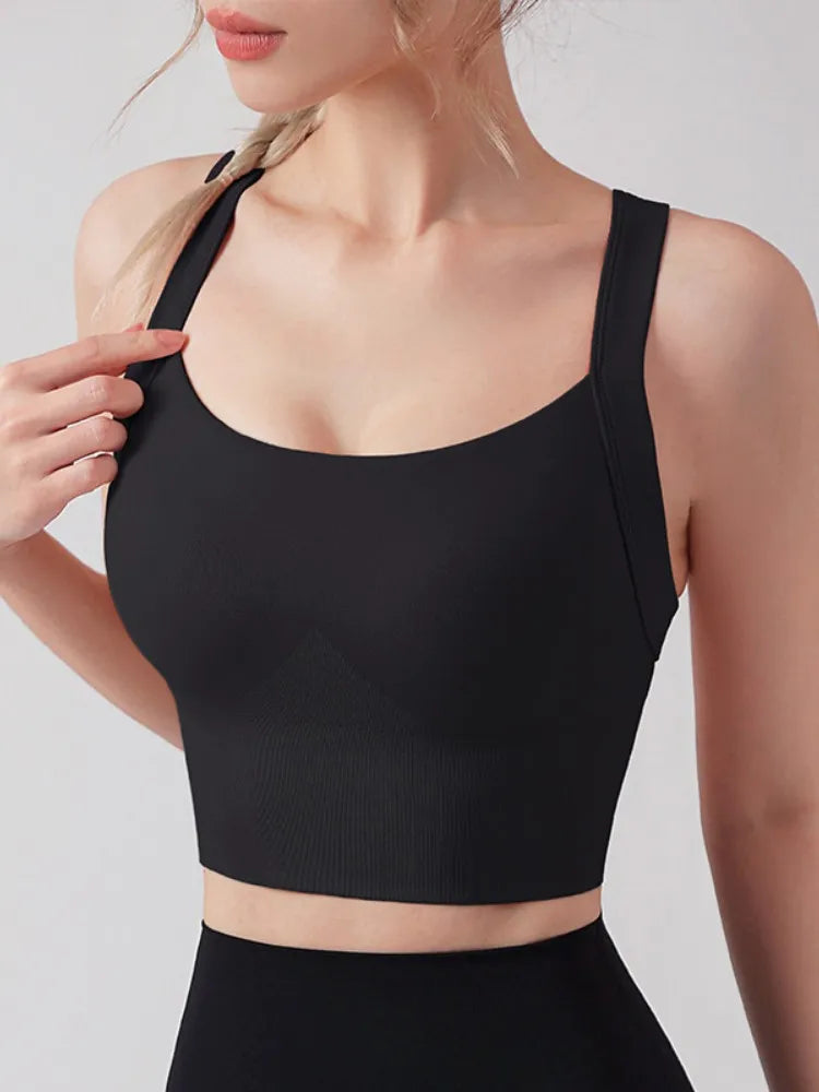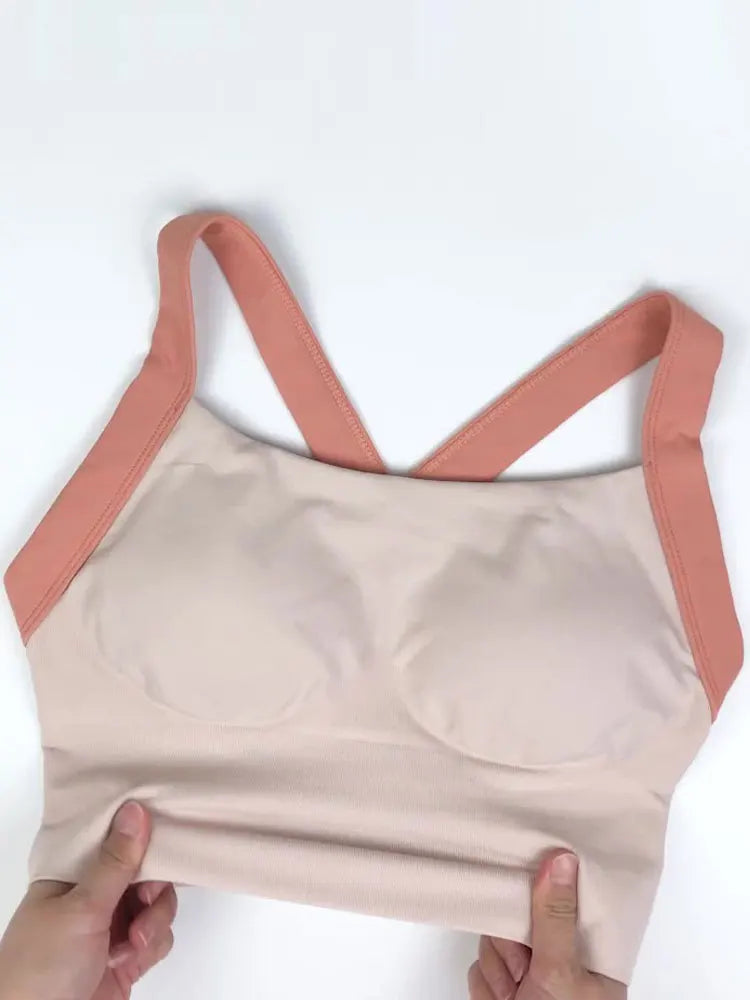 Get ready to crush your workout in style and comfort with Crista. This seamless plus size sports bra features a fixed chest pad for added support, while the seamless design eliminates irritation and chafing. With shockproof technology and a sporty look, you'll love wearing this bra for gym sessions, yoga classes, and beyond.
